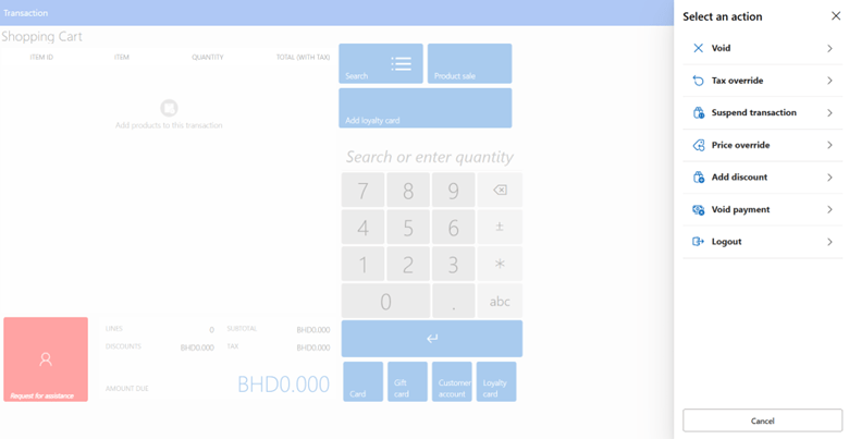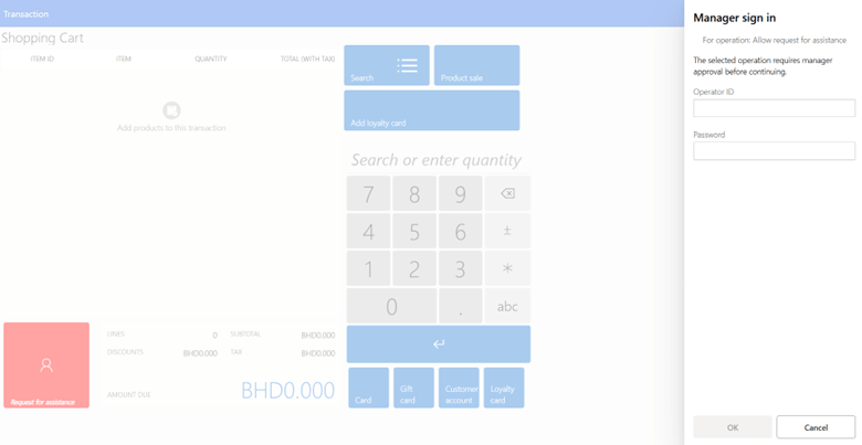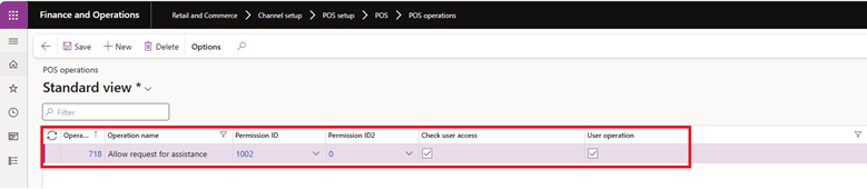 Note: In the POS Operations screen, manually configure the “Allow Request for Assistance” operation and assign it manager privileges (Permission ID: 1002).