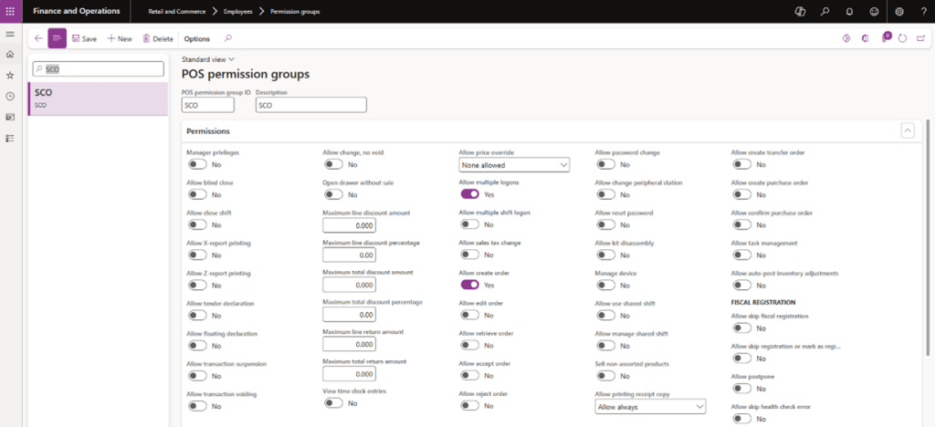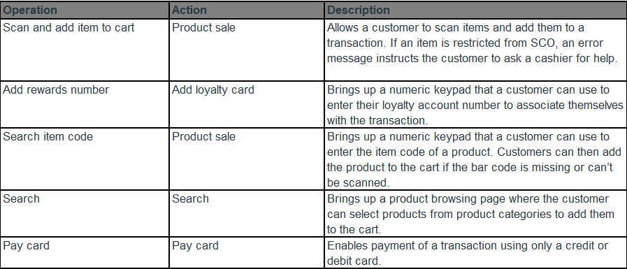 Microsoft recommends the following operations for a generic self-checkout user with limited POS access: